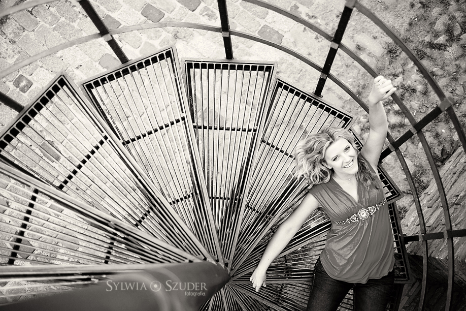 urocza dziewczyna i świetna sesja – zdjęcie na schodach – mistrzostwo!